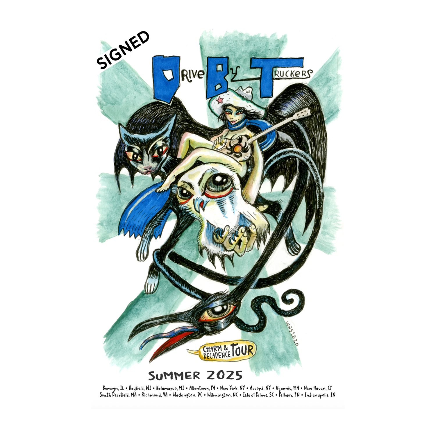 Official tour poster for Leg 2 of the 2025 Charm & Decadence Tour signed by the band. Please note: These posters have travelled and may show minor signs of travel ware.